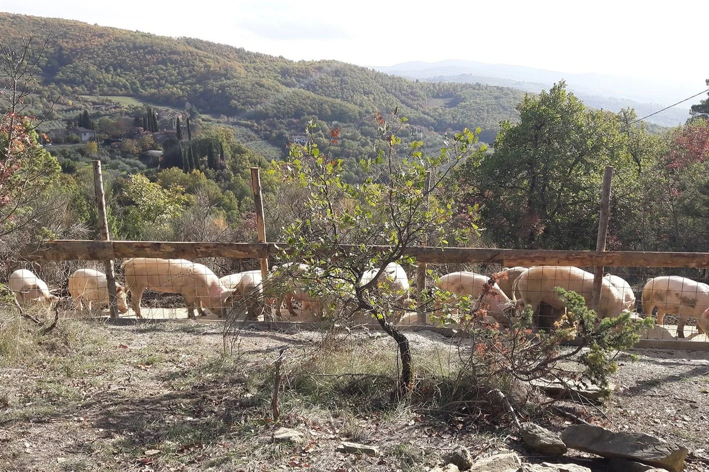 Maiatoscana è l’azienda agricola che fa nascere e alleva suini allo stato brado nei boschi di quercia, alle pendici del Casentino, vicino al borgo di Montegiovi a Subbiano (Arezzo) a circa 600 metri s.l.m.